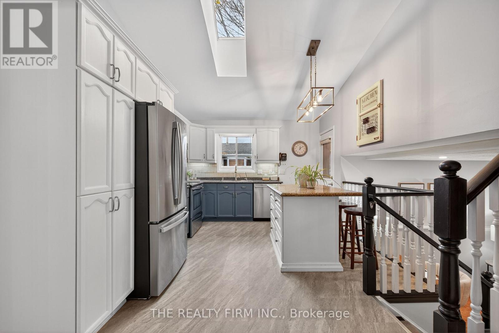 Welcome to 276 Ferndale Avenue, a hidden gem nestled in South London. This beautifully maintained 4-level split offers 3+1 bedrooms, 2 bathrooms, and a rare sense of peace and privacy, backing directly onto Highland Woods for a true cottage-in-the-city feel. Step inside to a bright main level featuring a family and dining area with French doors and custom floor-to-ceiling cabinetry. The kitchen offers a skylight, an island with a breakfast bar, stainless steel appliances (including a newer fridge), a filtered water tap, new flooring, and gas hookups for both the stove and dryer. A convenient laundry room completes the level. Upstairs, you'll find three spacious bedrooms, each with generous closet space and ceiling fans. The main 5-piece bathroom is completely renovated with double vanities, a separate tub, and shower. The lower level has a cozy family room with hardwood floors and gas fireplace, plus a bonus bedroom with bathroom access. On the lowest level, enjoy movie nights in the home theatre with a 120-inch retractable screen and high-end projector, along with an additional office or hobby room. Step outside to your private backyard oasis. The large, fully fenced yard features a double gate, green space, and mature trees that provide excellent privacy. The covered deck includes skylights, a ceiling fan, and removable panels that allow you to enjoy the space year-round. There's also a vegetable garden ready for your homegrown favourites. This property is filled with thoughtful upgrades and extras, including prewiring for security cameras, an Ecobee smart thermostat, and an insulated 9' garage door. Enjoy a heated, insulated workshop with 240V power for your projects, and there's also a shed for added storage. Located in a prime area close to parks, schools, golf courses, Victoria Hospital, shopping, recreation centres, and public transit with a direct route to Western University, this home offers an incredible balance of nature, convenience, and modern comfort. (id:4069)