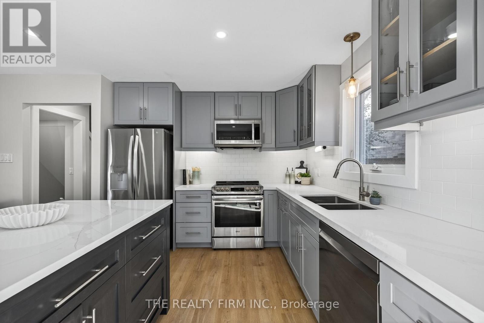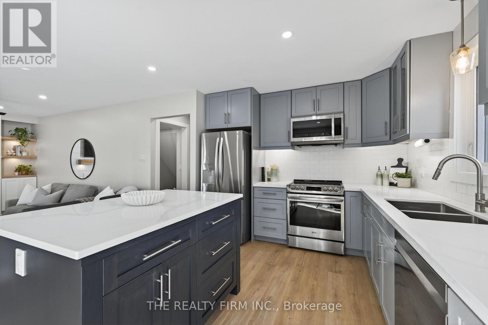 Discover ultimate family living at 107 Cheswick Circle. This beautifully updated two-storey home blends comfort, style, and function in a quiet, tree-lined neighbourhood where kids can ride bikes and neighbours still wave hello. Offering 3+1 bedrooms, 2 bathrooms (plus a basement rough-in) and double-car garage with paving stone driveway, it's the kind of home that instantly feels welcoming. Step inside to bright, open spaces finished with new vinyl plank flooring on the main floor and new carpet in the lower level. The dining room's crown moulding and large bay window create an inviting setting for family meals and holidays, conveniently located next to the 2-piece bathroom. The modern kitchen shines with stainless steel appliances, quartz counters, island with breakfast bar plus a generous amount of cabinetry for effortless organization. The adjoining living room centers around a cozy gas fireplace framed in charming shiplap, surrounded by custom built-ins. Oversized main-floor laundry connects to the garage and side yard, making everyday life easier. Upstairs, three spacious bedrooms feature ceiling fans and soft carpeting for comfort. The primary bedroom offers a walk-in closet, while the updated 4-piece bathroom showcases stylish finishes and a linen closet for added storage. The finished lower level extends your living space with a rec room, guest bedroom, and rough-in for a future bathroom -- ideal for a granny suite or teenage retreat. Out back, enjoy the serenity of nature with no rear neighbours and a stunning backdrop of forest and parkland. Relax under the gazebo, host barbecues on the paving stone patio, or watch kids and pets play freely in the open green space framed by mature trees. Additional recent updates include new shingles and eavestrough (2024) offering peace of mind for years ahead. Close to parks, trails, schools, White Oaks Mall, and Highway 401, this home delivers comfort, community, and connection -- everything a family could hope for. (id:4069)