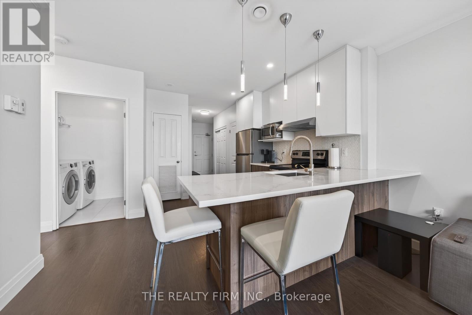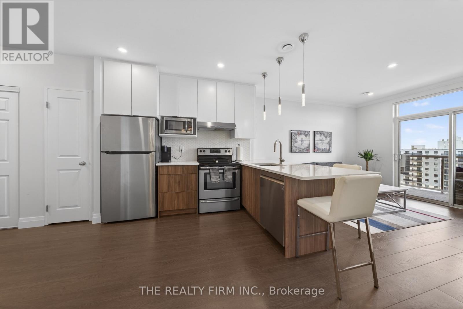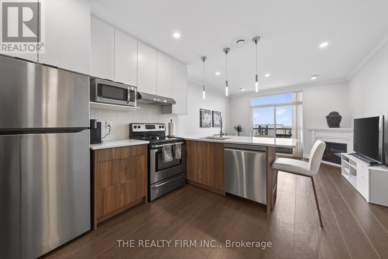 Welcome to Suite 803 at The Westcliff -- a beautifully updated, move-in ready condo offering elevated living with a clean, modern aesthetic and stunning north-facing views. Step inside to discover all new laminate flooring flowing seamlessly throughout. Complemented by flat ceilings with LED pot lights and upgraded light fixtures, creating a bright, contemporary feel. The fully renovated kitchen is part of what separates this condo from the rest, anchoring the open-concept layout, featuring sleek quartz countertops, stylish backsplash, s/s appliances, and spacious peninsula with seating. The sun-filled living room complete with a cozy fireplace and upgraded sliding doors leads to your private balcony, where you can unwind after a long day. The spacious primary bedroom offers a calm, comfortable retreat with excellent closet space, while the fully updated 4-piece bathroom showcases modern finishes, stone countertops and a fresh, clean design. Enjoy the added convenience of in-suite laundry. This condo includes TWO PARKING SPACES (one underground and one on-ground) -- a rare convenience and long-term value add. Residents also enjoy access to building amenities including a gym and library/games room with pool table. Ideally located in South London, just minutes from Victoria Hospital, shopping, restaurants, parks, and major transit routes -- offering a connected, low-maintenance lifestyle in a highly convenient location. (id:4069)