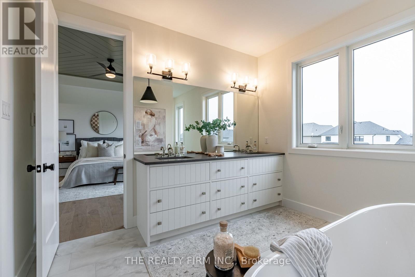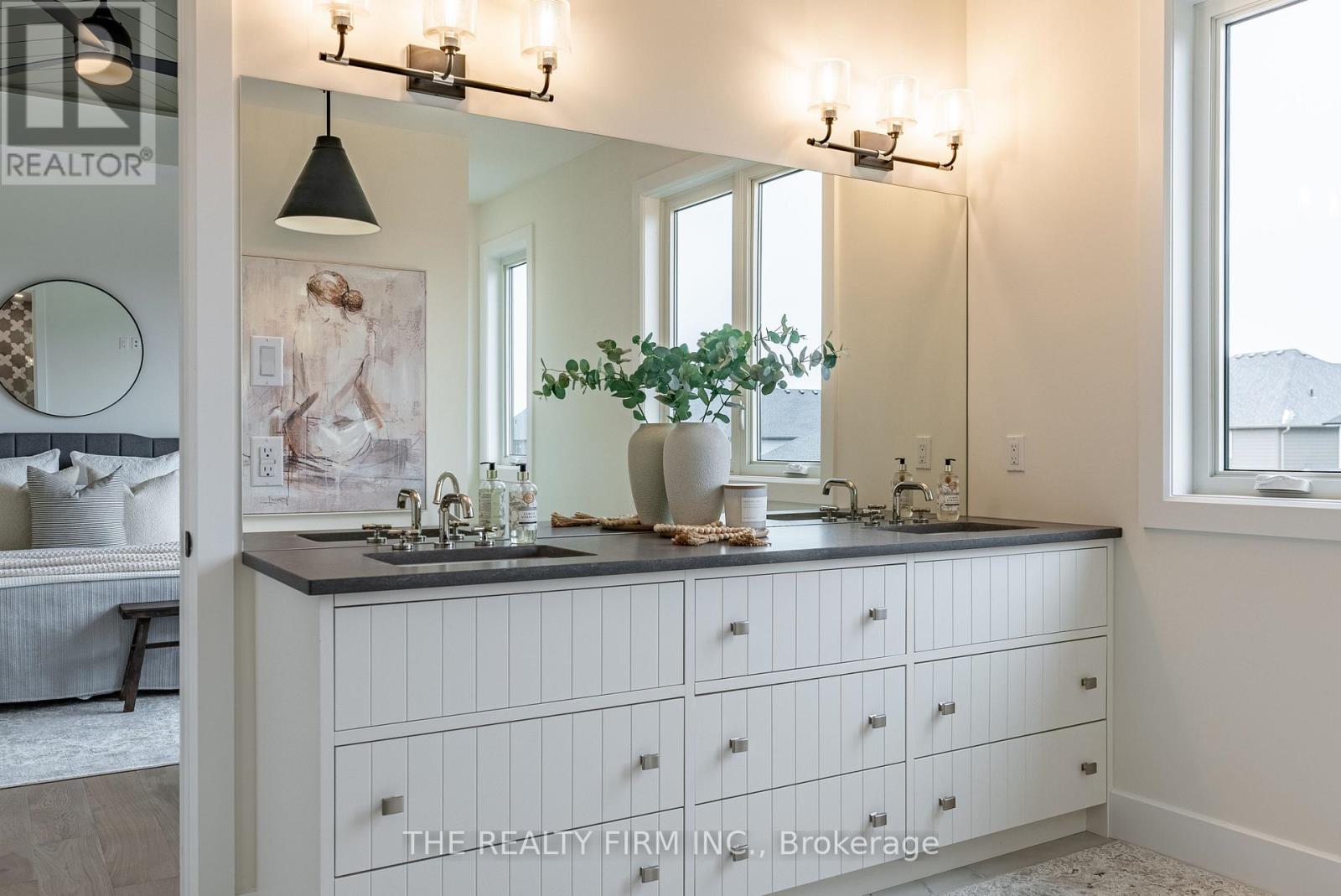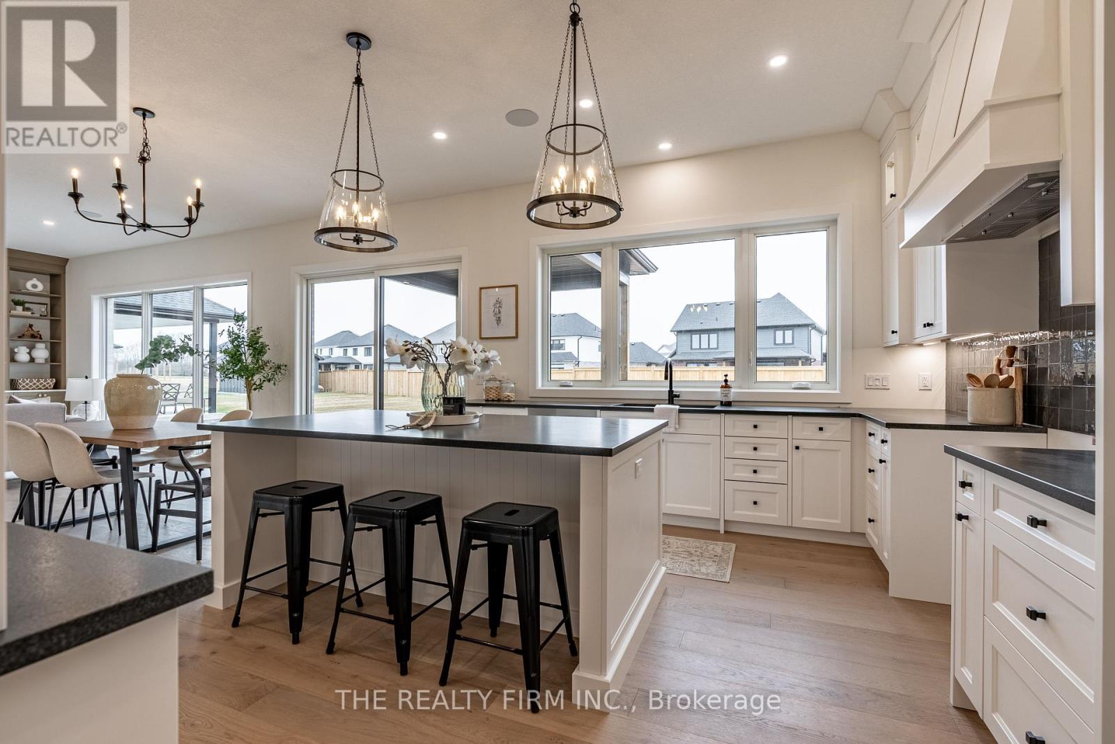 Welcome to The Boardwalk at Mill Pond-an--upscale, family-friendly community in the growing town of Dorchester. Presented by Stonehaven Homes, this impressive two-storey model offers a striking transitional design with a timeless stone façade, a 2-car garage, and a convenient location just minutes from the 401 and the City of London. Enjoy the ample living space with 4 bedrooms, 3 bathrooms, and 2,865 square feet above grade. The front entrance welcomes you with an abundance of natural light flowing through the soaring 20-foot foyer ceiling. The versatile den is ready to serve as a formal dining room or home office. Entertaining is a breeze in the open concept layout that seamlessly combines living, dining, and kitchen spaces, complimented by a cozy fireplace. For the chef in the family, brace yourself for an incredible kitchen with an abundance of stone counters, large island, walk-in pantry and oversized window overlooking the backyard. The second level welcomes you with the perfect sized primary bedroom with walk-in closet and luxurious 5-piece ensuite, offering soaker tub, double vanity and elegantly tiled shower enclosed in glass. Additionally, this level provides another 3 spacious bedrooms, and stunning 5-piece main bath. The unfinished basement offers a blank canvas to tailor your needs. With a large lower footprint, the possibilities are endless. The backyard features a covered back patio providing the ideal setting for outdoor R&R paired with plenty of green space for the kids and pets to play. Experience the pride of Stonehaven Homes and the beauty of The Boardwalk at Mill Pond in Dorchester. Discover a harmonious blend of modern living, exceptional craftsmanship, and the tranquility of nearby nature in this remarkable home. Please note: Photos are from a previously built, upgraded model with a 3-car garage and are for illustrative purposes only. (id:4069)